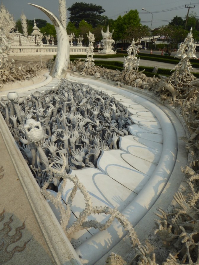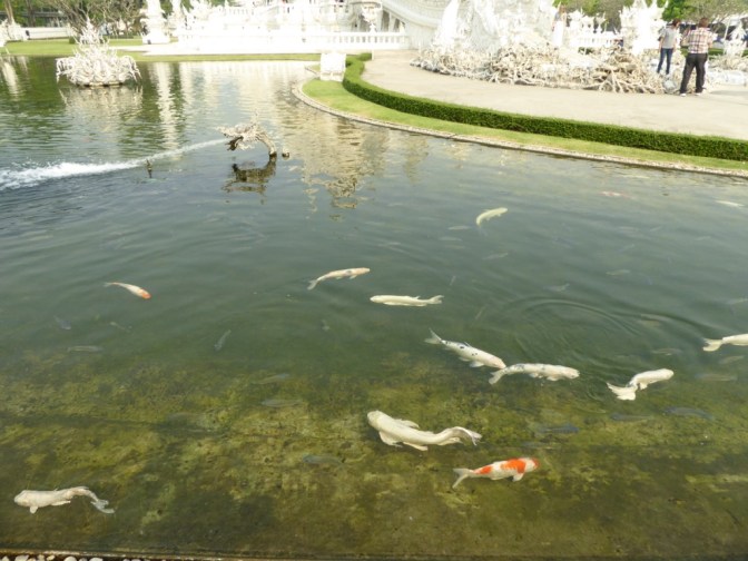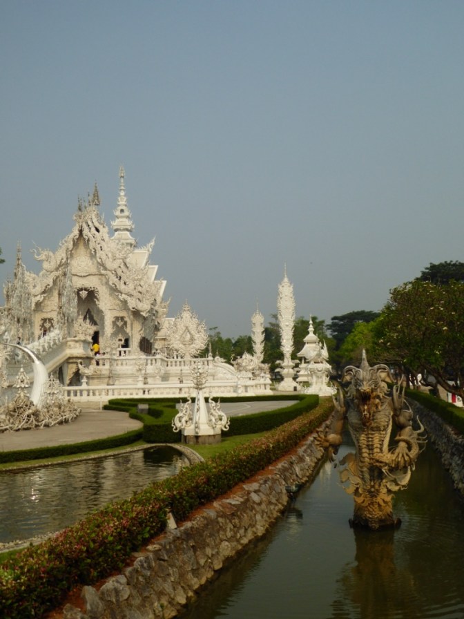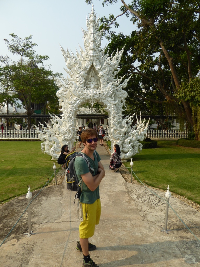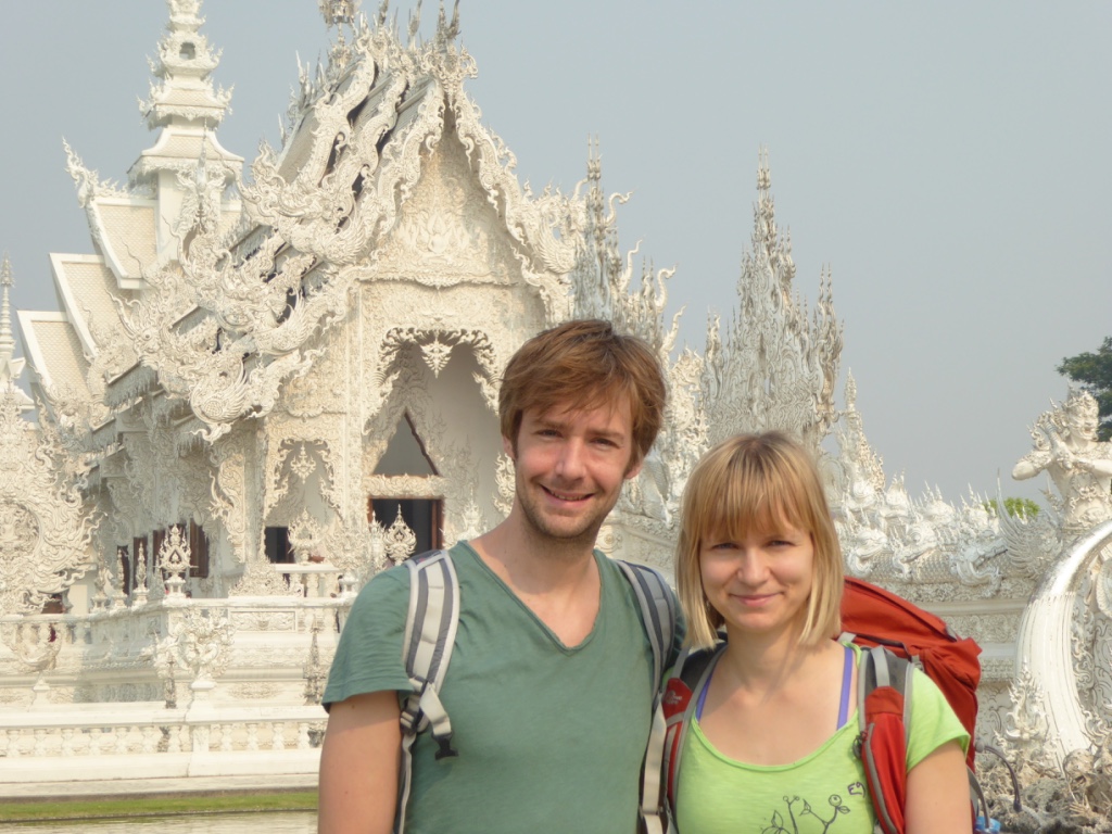 Von Chiang Mai mit dem VIP Bus nach Chiang Rai. Nach ca. 5h Fahrt sind wir gegen Abend in der Stadt angekommen. Für nur 18€/ Nacht sind wir in einem unglaublich schönen und gepflegtem Guesthouse untergekommen. Stadtrundgang im Mondenschein. Am nächsten Morgen mit unserem eigenen Tuktuk-Fahrer zum Busbahnhof schnell die Tickets für die Weiterreise gekauft und Gepäck eingelagert und noch zum beeindruckenden weißen Tempel gefahren, bevor es gegen 10:30 Uhr weiter Richtung Laos ging.